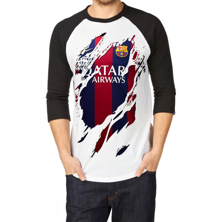 Kaos 3d Jersey Barcelona Home Raglan Putih Hitam